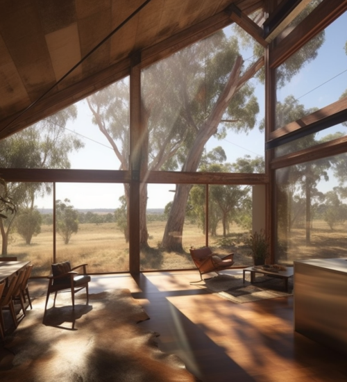 The team typed in: “Rural homestead interior modern Australian architectural design within a scenic cattle station with bright summer light” and Midjourney then produced the above images.