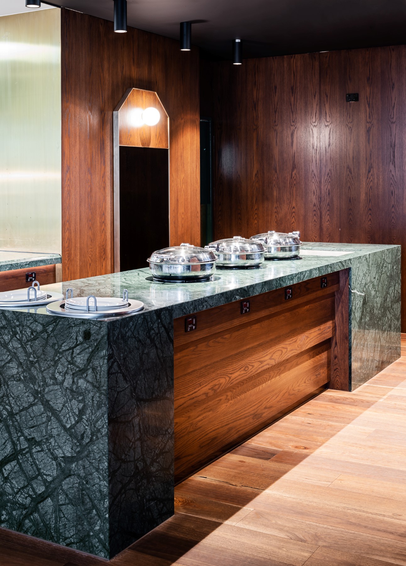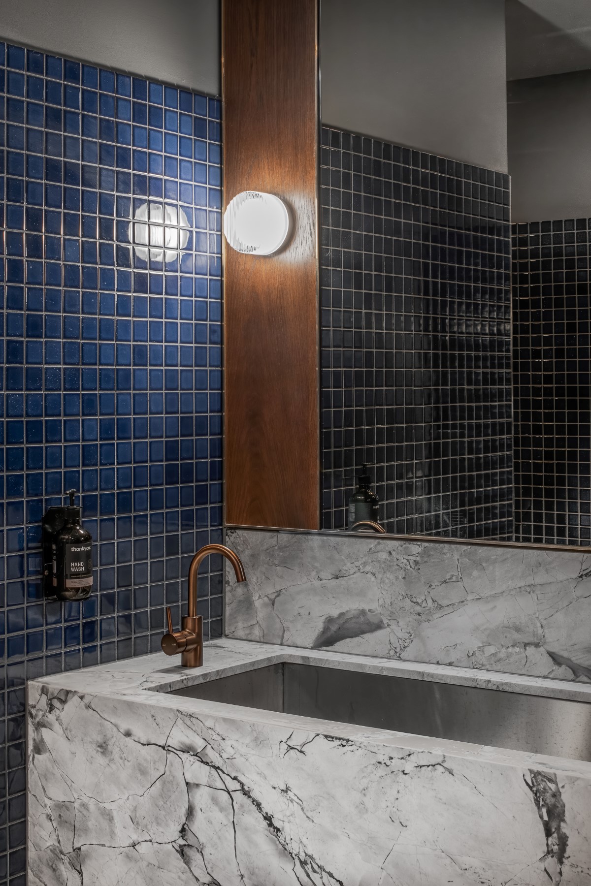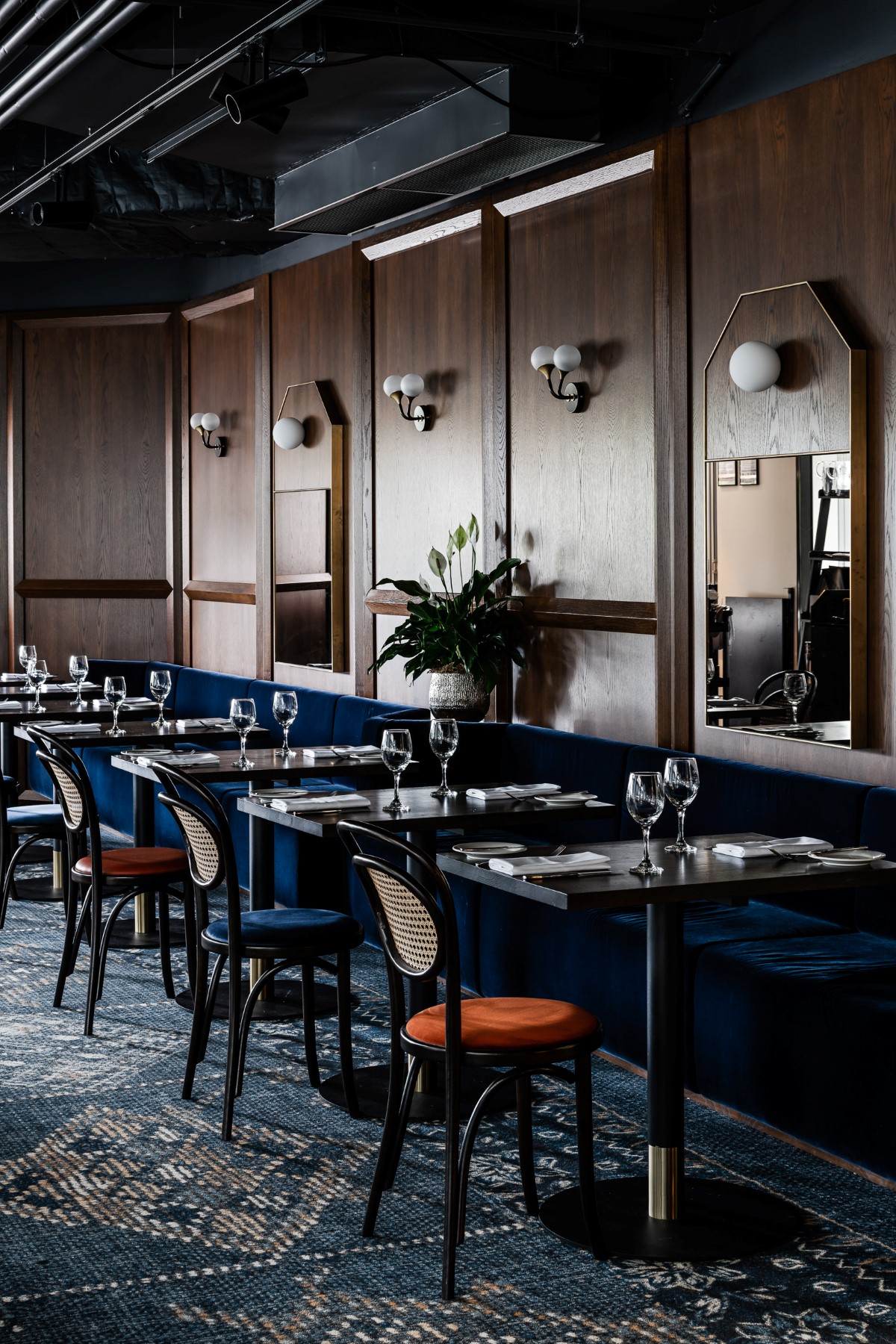 The glazed screens throughout pay tribute to the old vintage tram interior seat divisions.