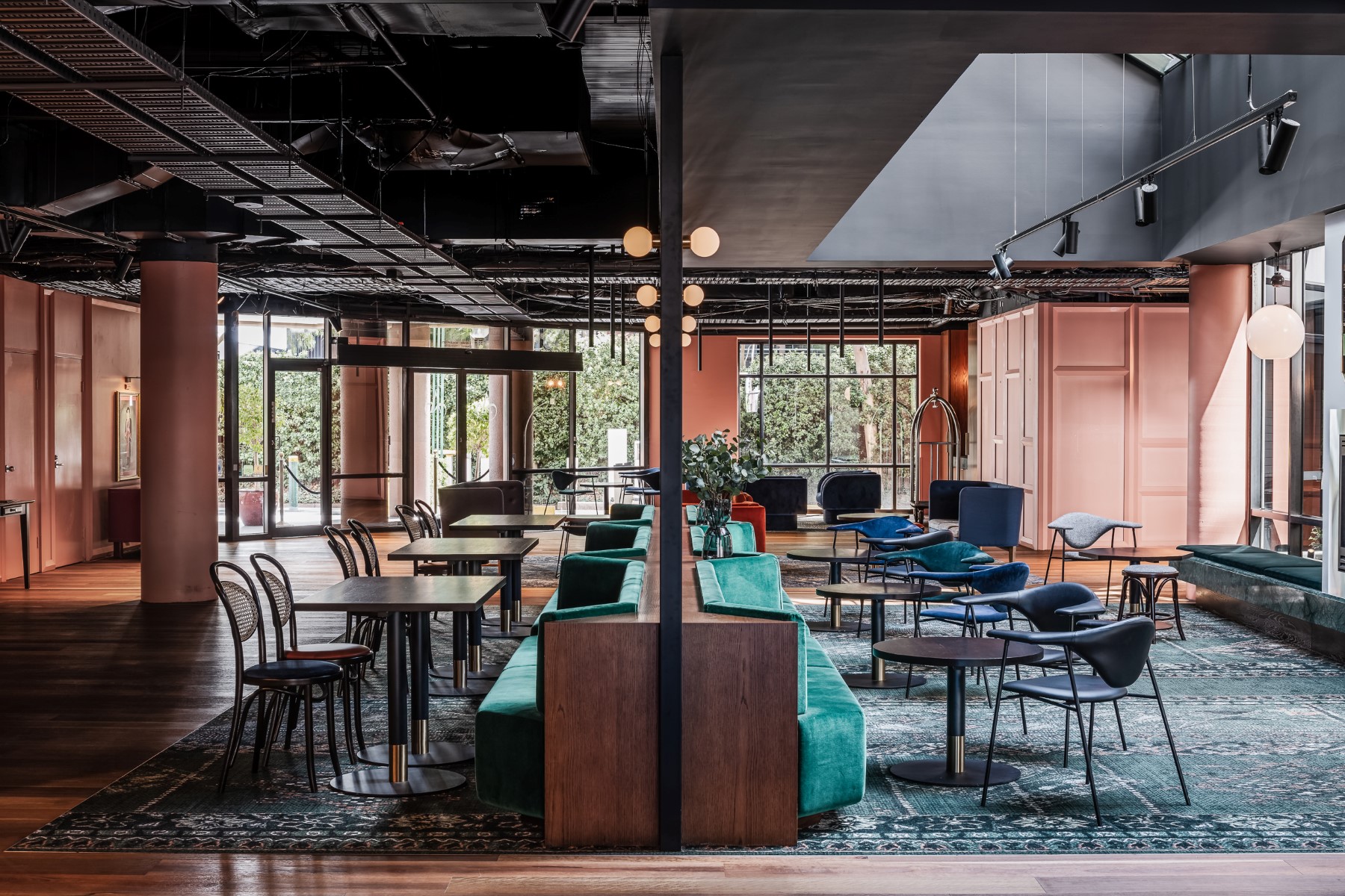 The Amora Hotel, a former tram depot in Richmond retransformed into a chic lobby, restaurant and function space, drawing on the area’s rich character in its revitalisation.