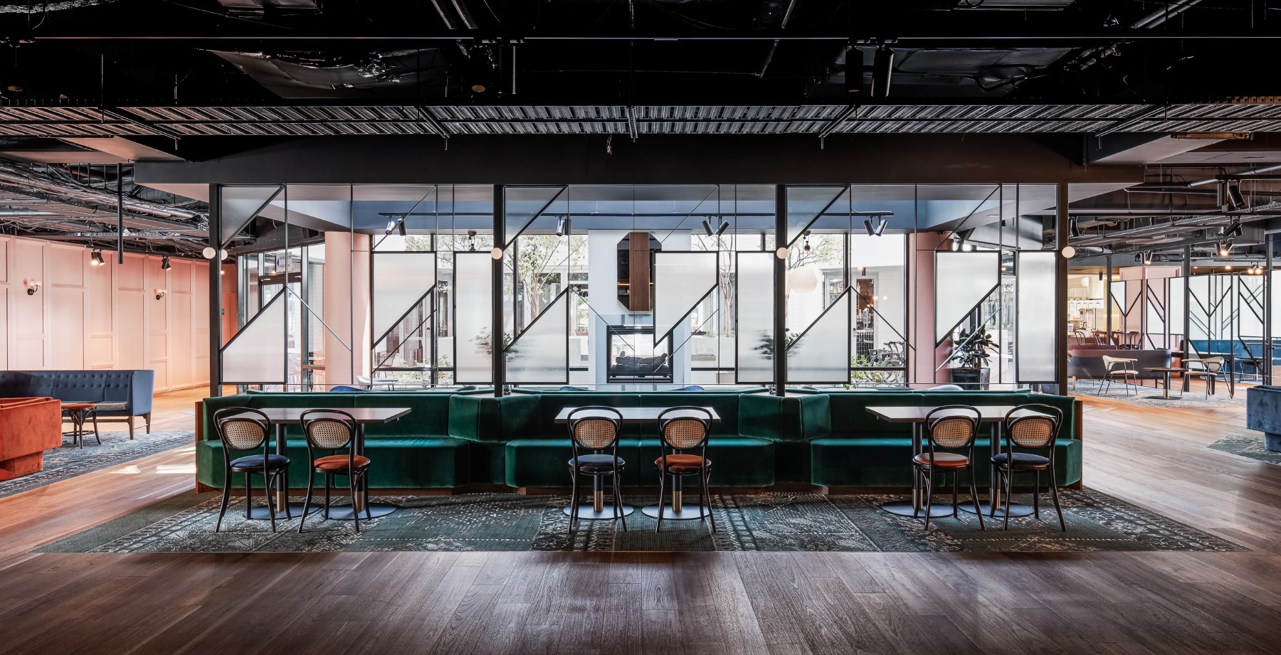 The Amora Hotel, a former tram depot in Richmond retransformed into a chic lobby, restaurant and function space, drawing on the area’s rich character in its revitalisation.