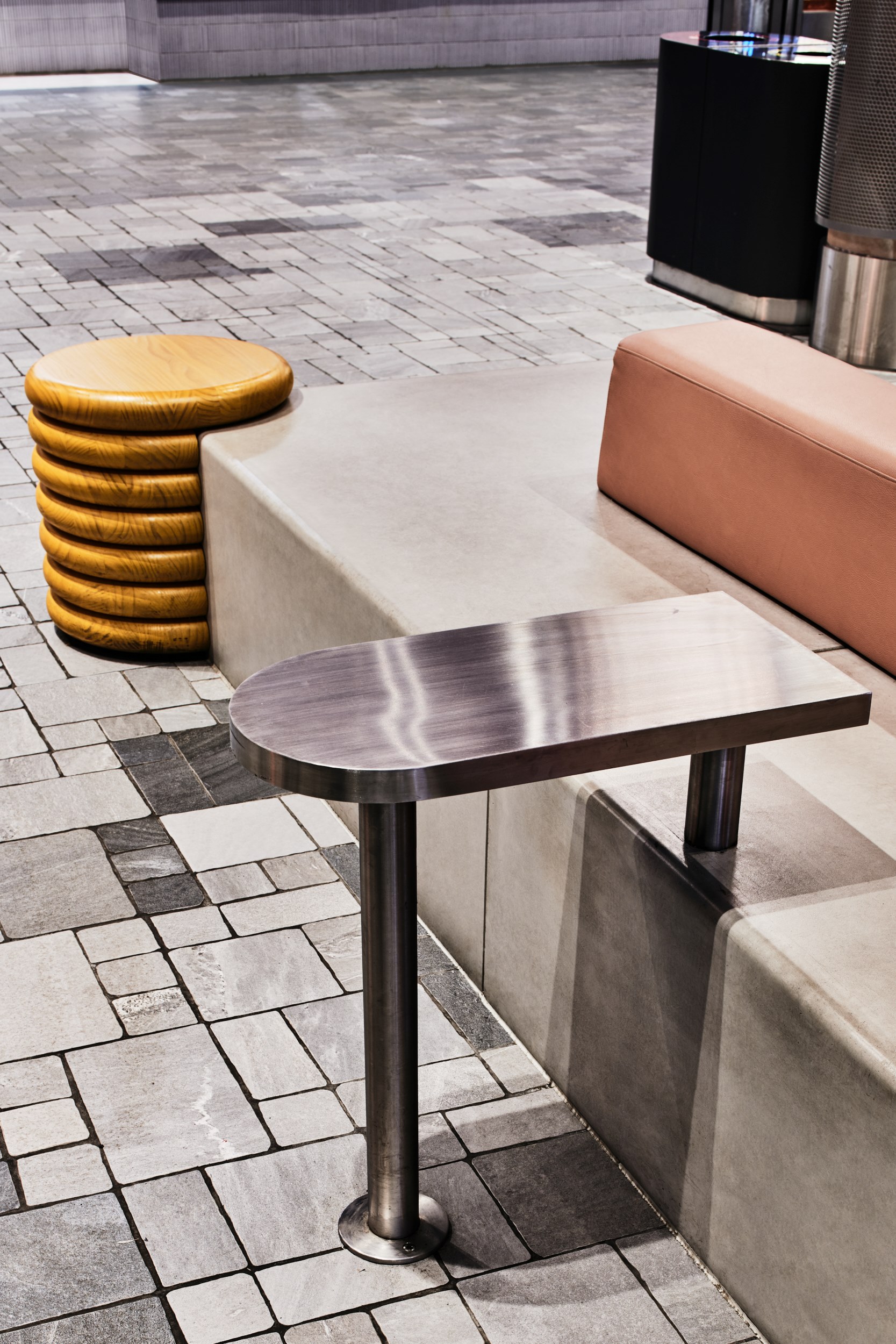 Embracing the urban energy of the surrounding area, we have infused tactile surfaces with raw design elements throughout the centre. The atmosphere exudes an urban ambiance, celebrating a new and captivating cyber-punk’ essence‘. This distinctive character is brought to life through a variety of colourful and metallic finishes.