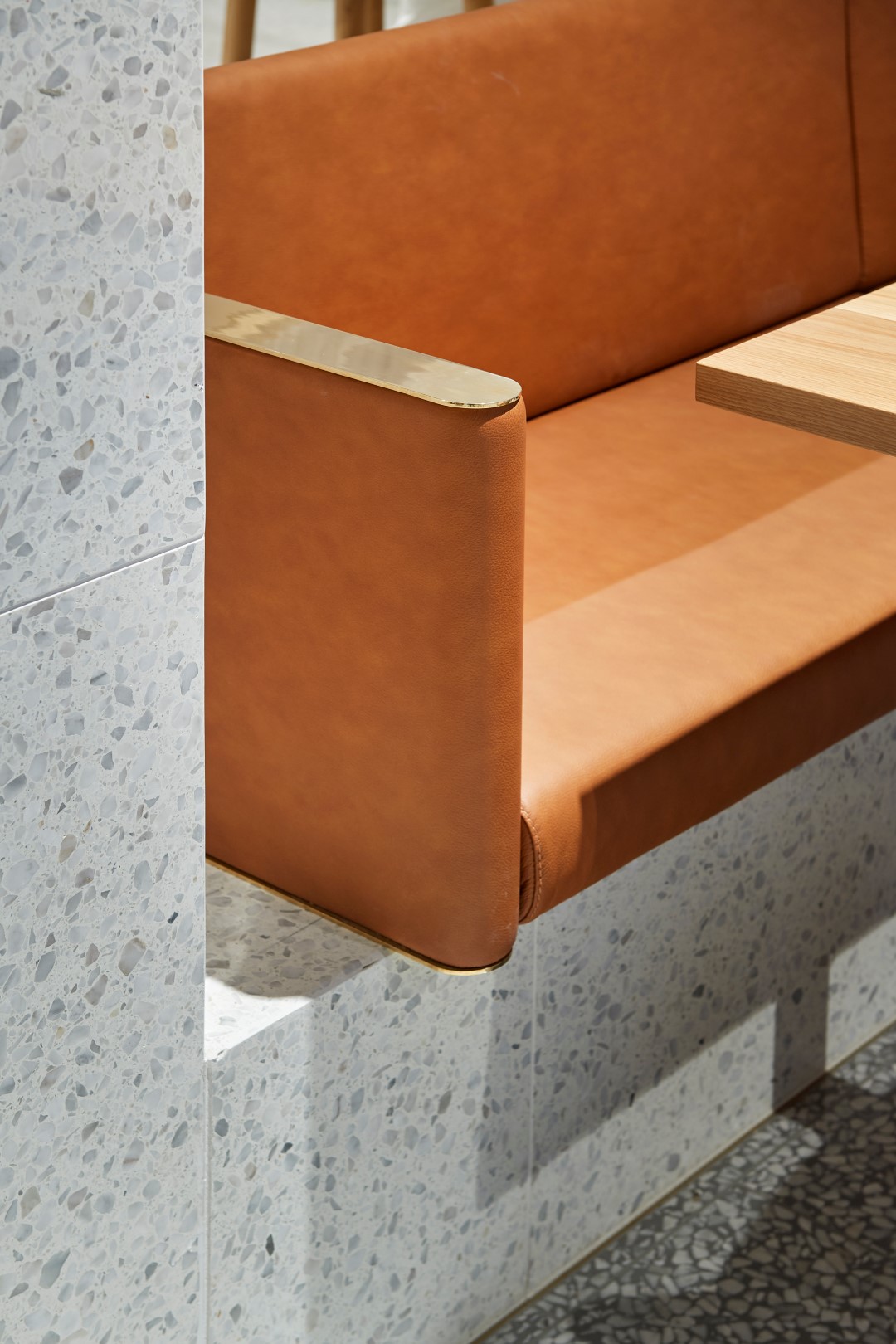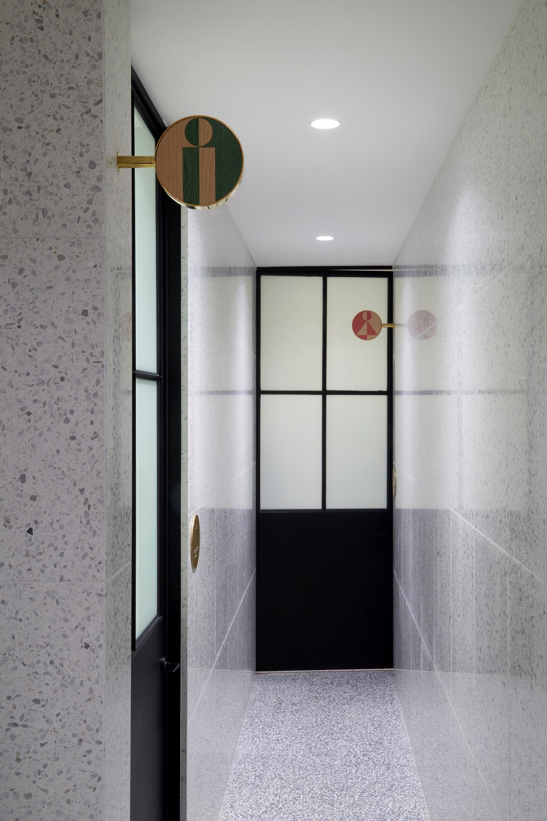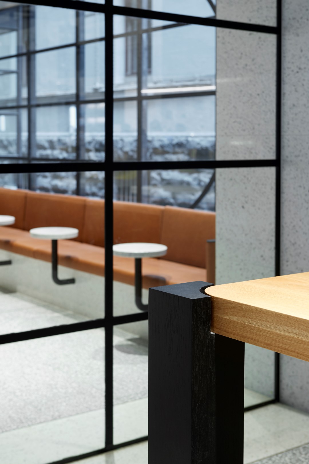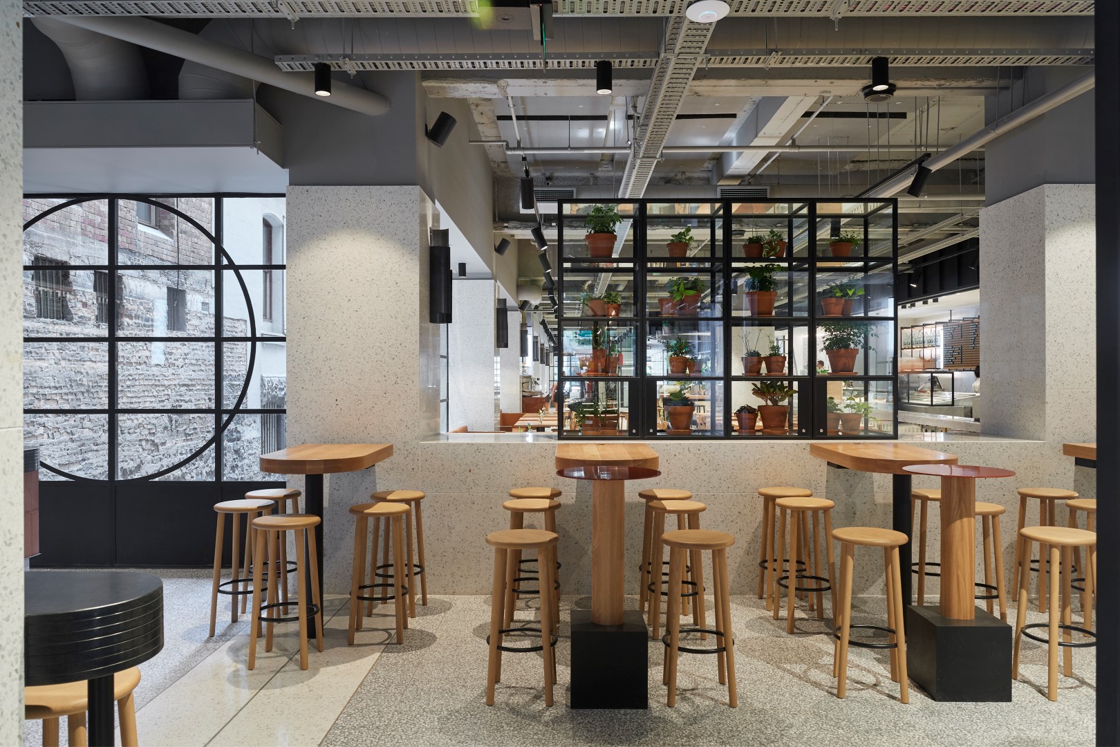 Solid volumetric forms and geometries feature throughout the space, which contrast with lighter fine steelwork on facades and display cases. Honouring the Italian tradition, there is a liberal use of terrazzo, marble and cut stone, with the design built up through blocks of contrasting materials. We sought to explore materials with textural contrast, juxtaposing refined and raw materials.
