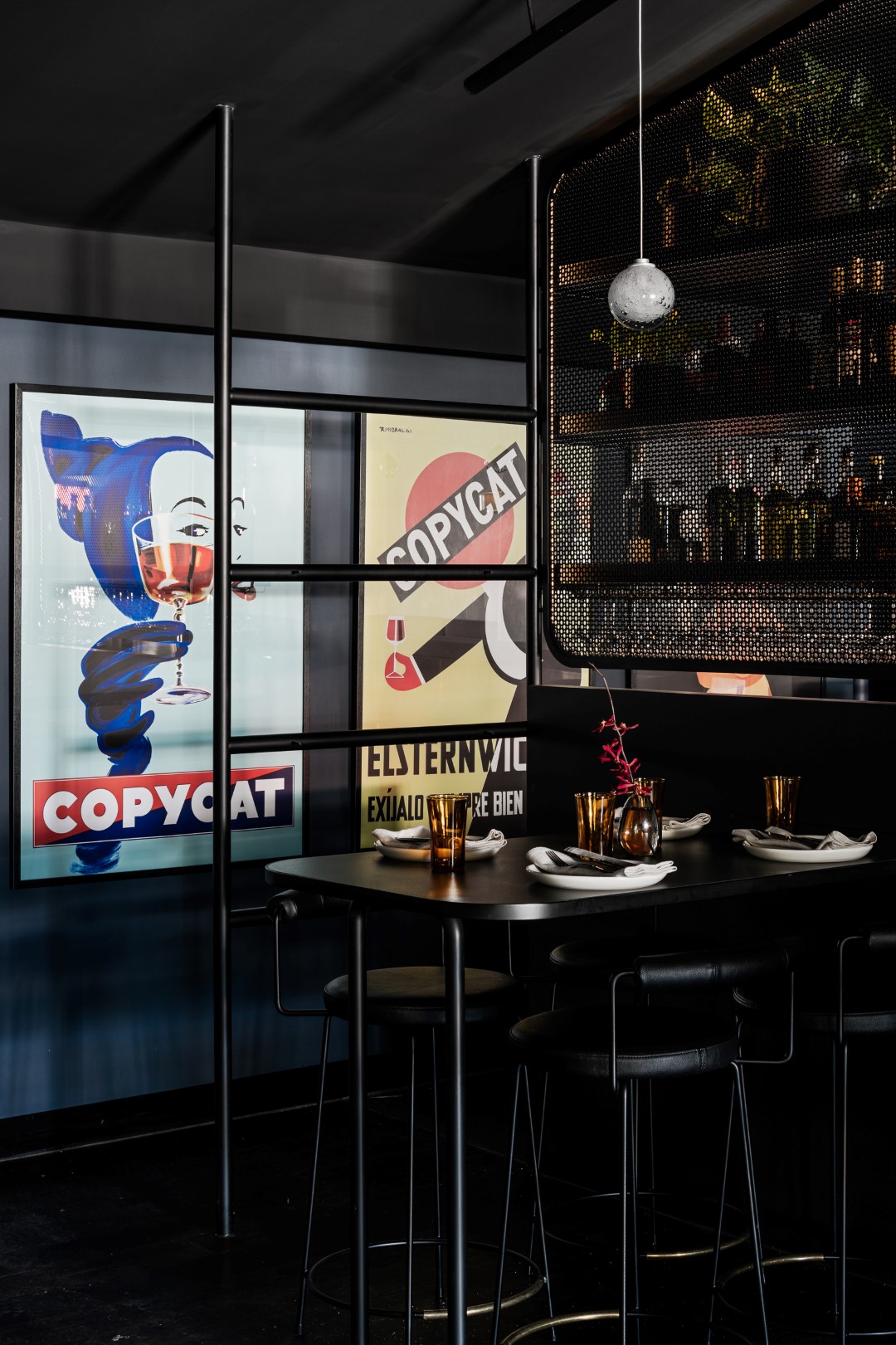 CopyCat Bar & Restaurant sits within a 100 year old heritage cinema building in Elsternwick, Victoria. The design was inspired by the cinematic synergy, offering a moody, date night destination with an alluring candle-lit dining room, intimate bar, and semi-private lounge.