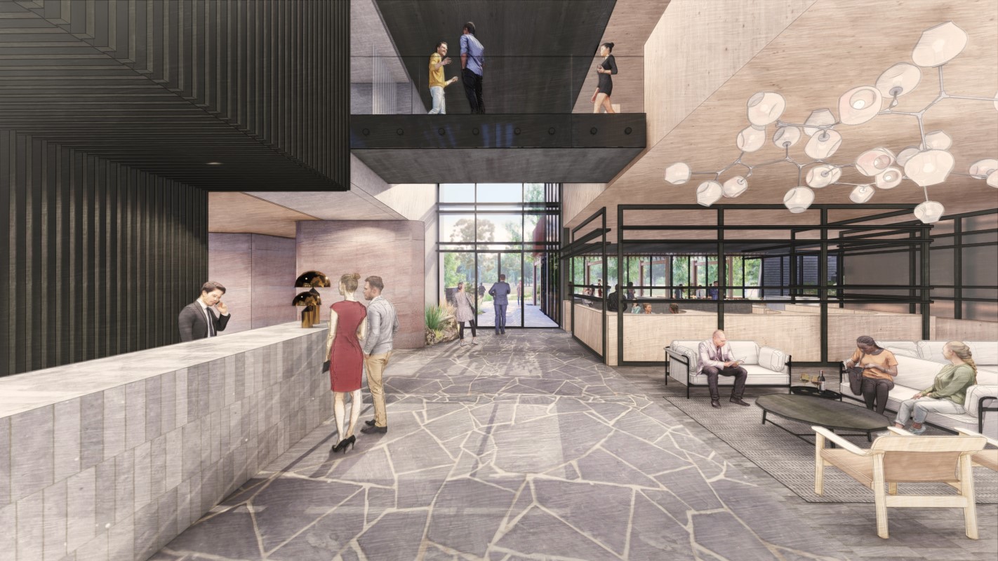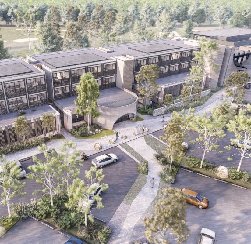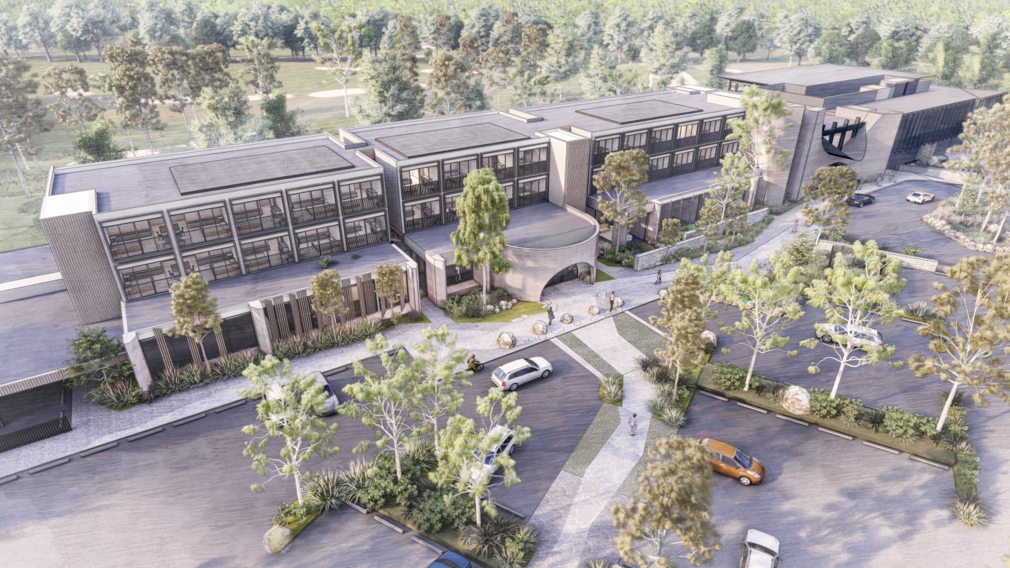Located in rural Victoria, the Eynesbury Development incorporates a 60 unit accommodation hotel with an events and conference centre, golf facilities, bar, restaurant and wellness centre that focuses on relaxation, grounding and connection to nature.