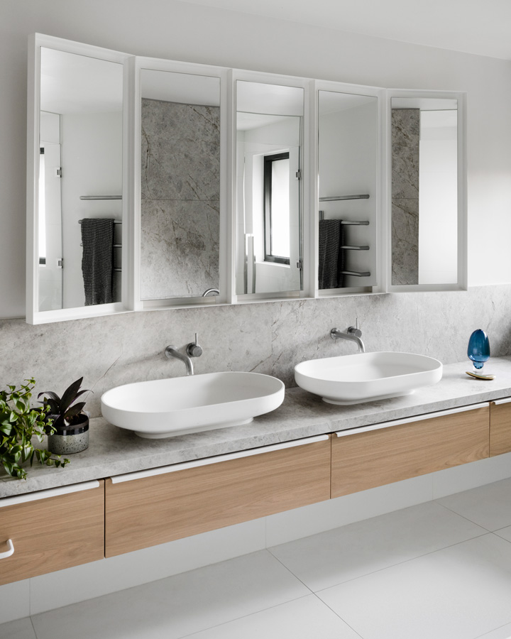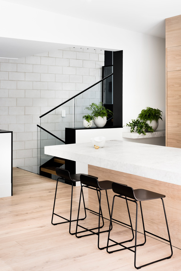 White Blockwork, by Austral Brick. Textural yet understated, lending to the clean and minimal feel.