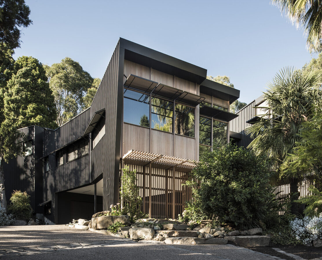 Nestled into the sloping landscape of Ivanhoe East, this project thoughtfully responds to the client’s brief for a contemporary family home with a powerful connection to its surrounds. Exploration of the connectivity between both the home and its landscape, and the interior and exterior spaces informed much of our design response.