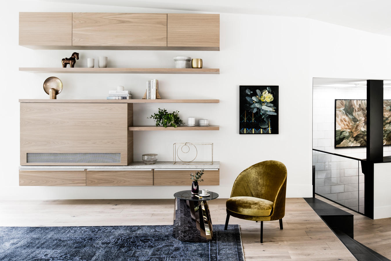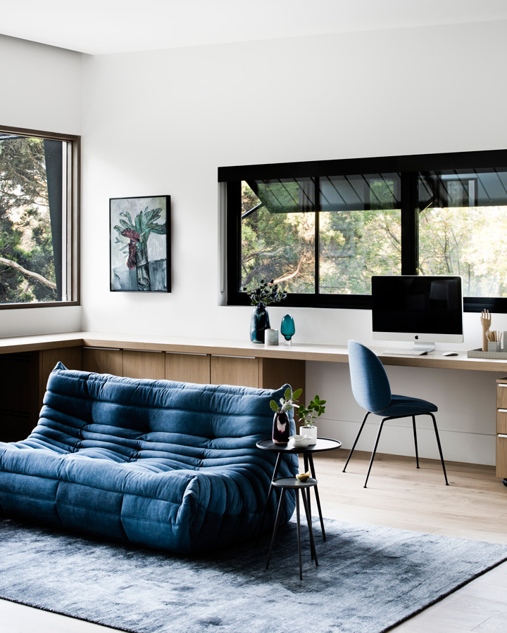 A tranquil space to observe the scenery. The main living spaces are almost understated; addressing the need from the clients for clean, highly functional, and beautiful spaces which will accommodate their family of seven whilst also not detracting from the beautifully framed landscapes that adorn each view.