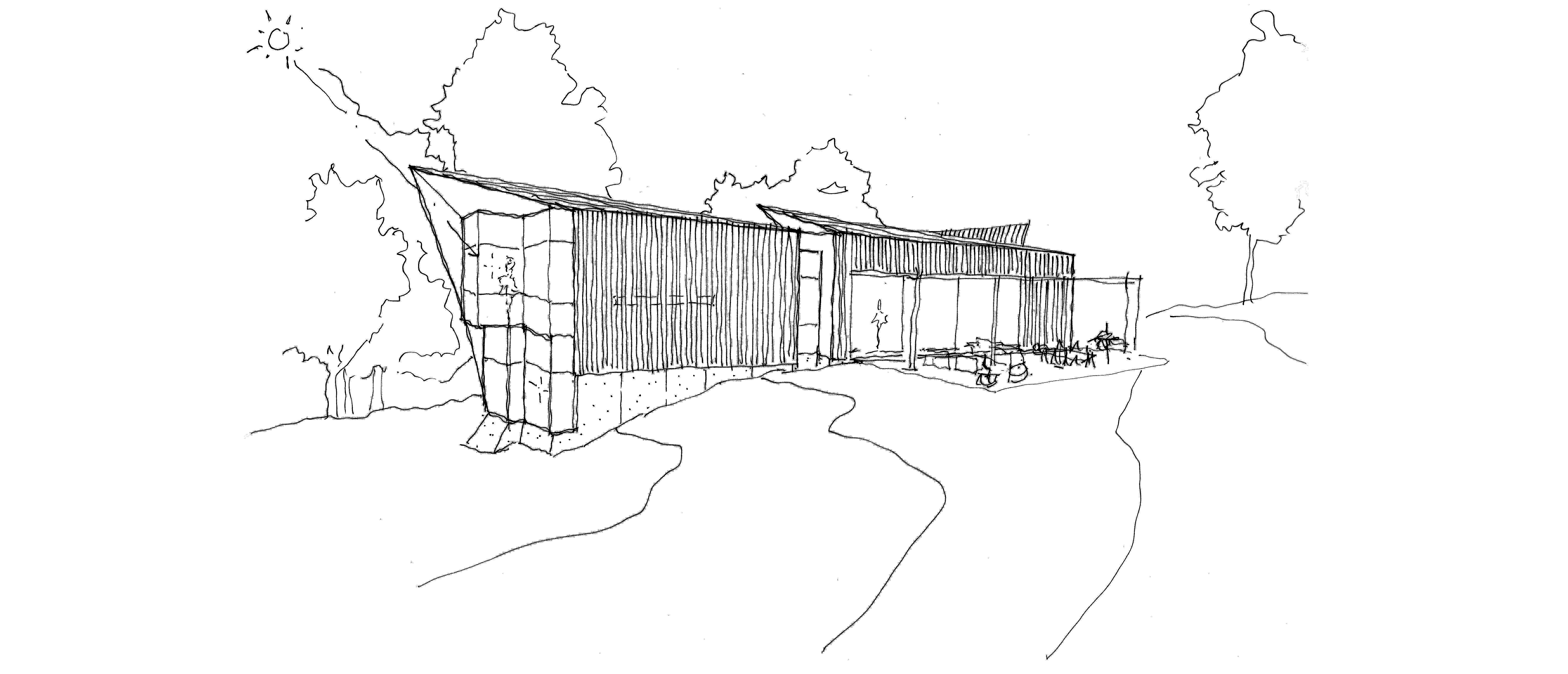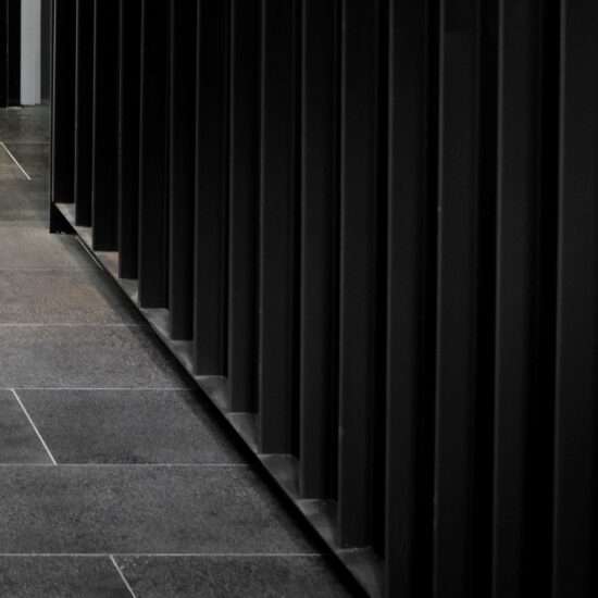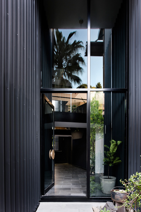 Charcoal Standing Seam Cladding. Traditionally an exterior finish, references the bold structure of the building’s façade.