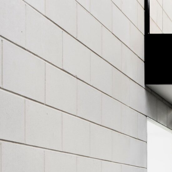 White Blockwork, by Austral Brick. Textural yet understated, lending to the clean and minimal feel.