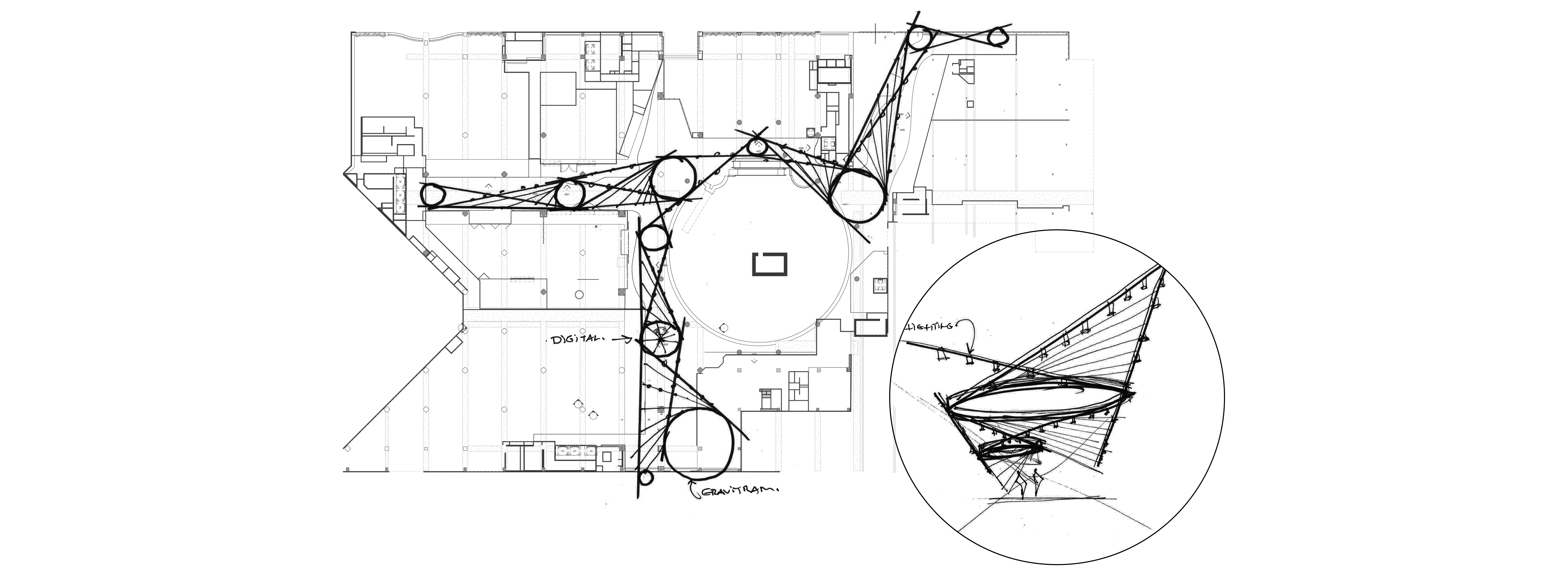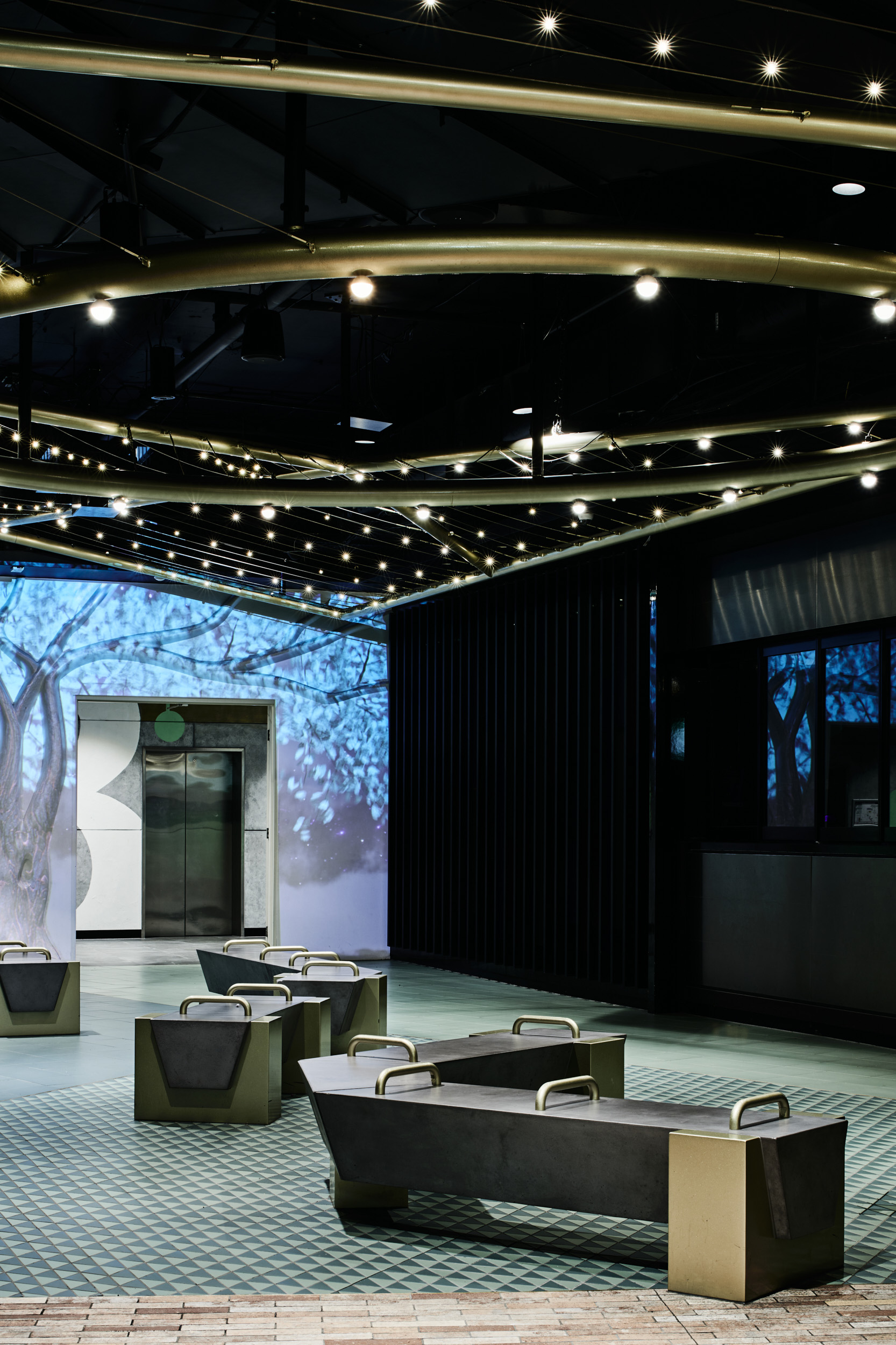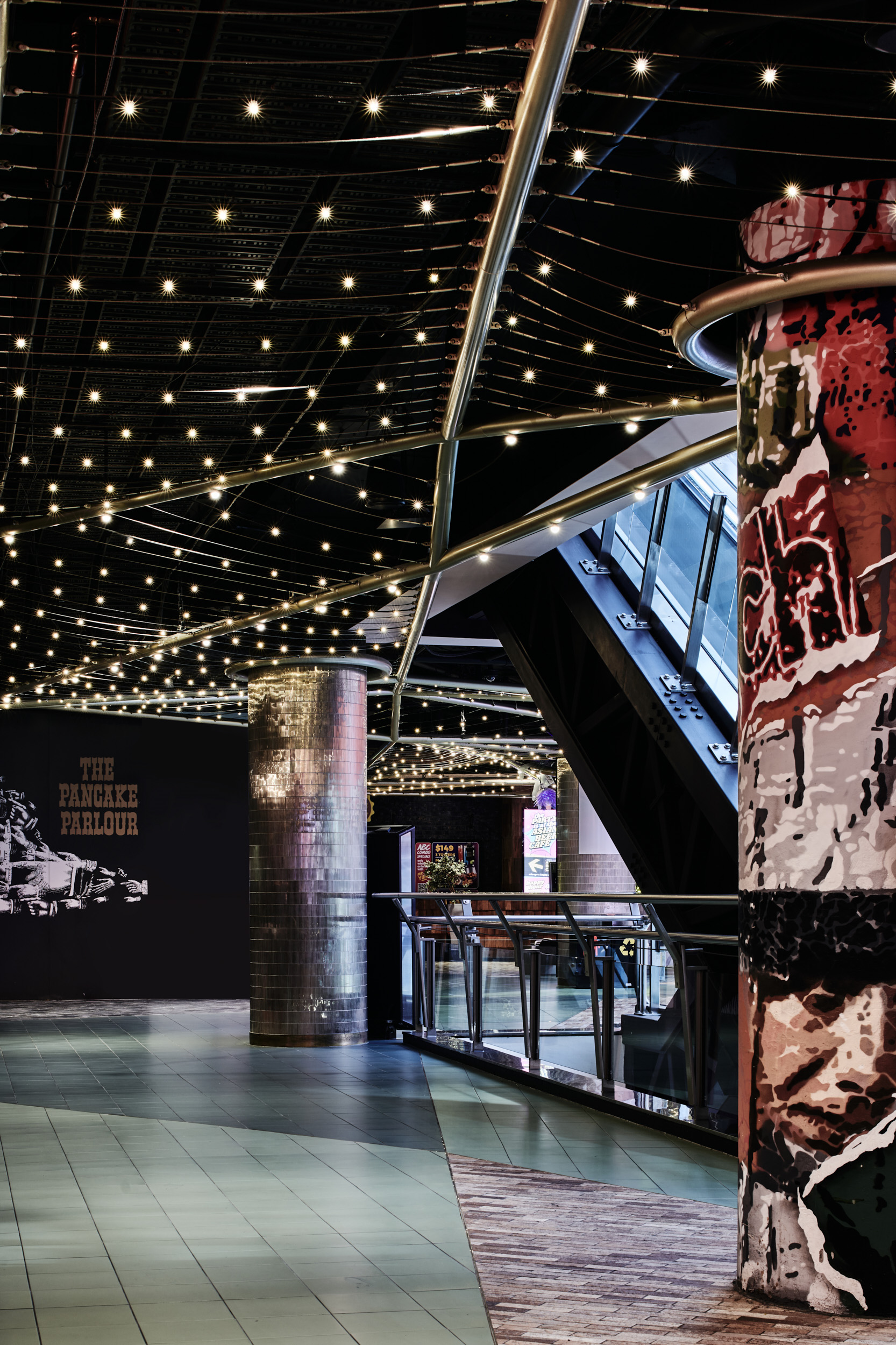 “Taking inspiration from the famous Melbourne Central glass cone that envelopes the Shot Tower, we looked to recreate this webbed structure across the ceiling, joining the various tenancies and walkways together with a fine, metallic thread.