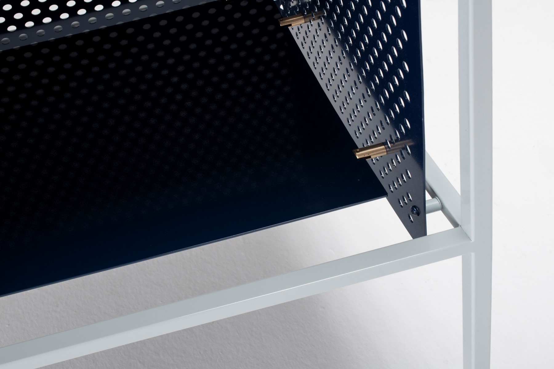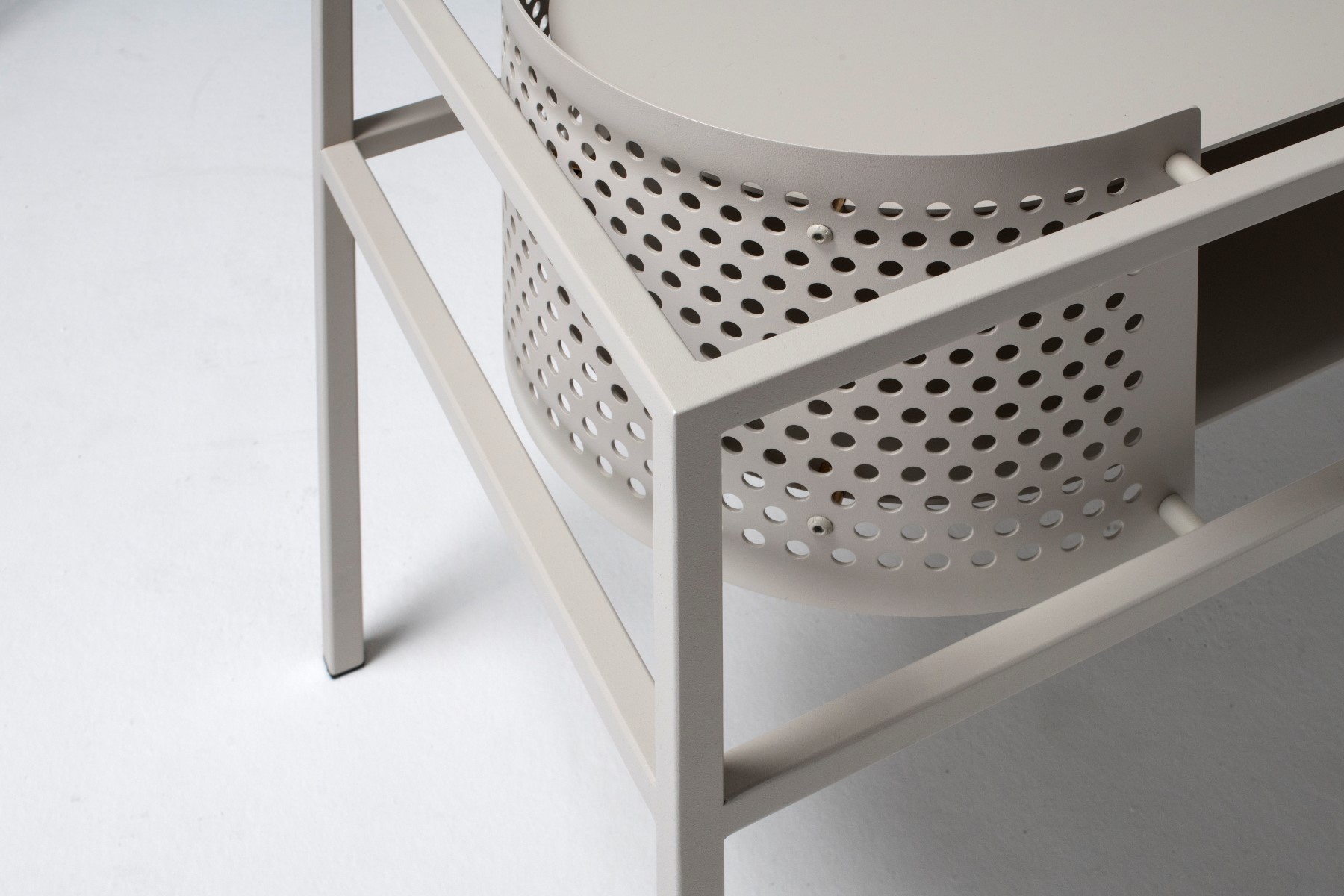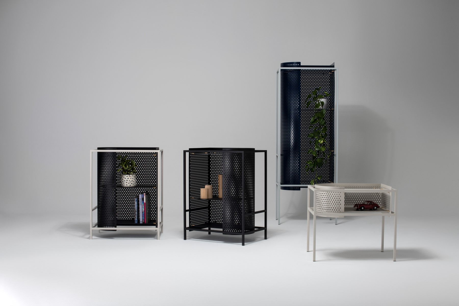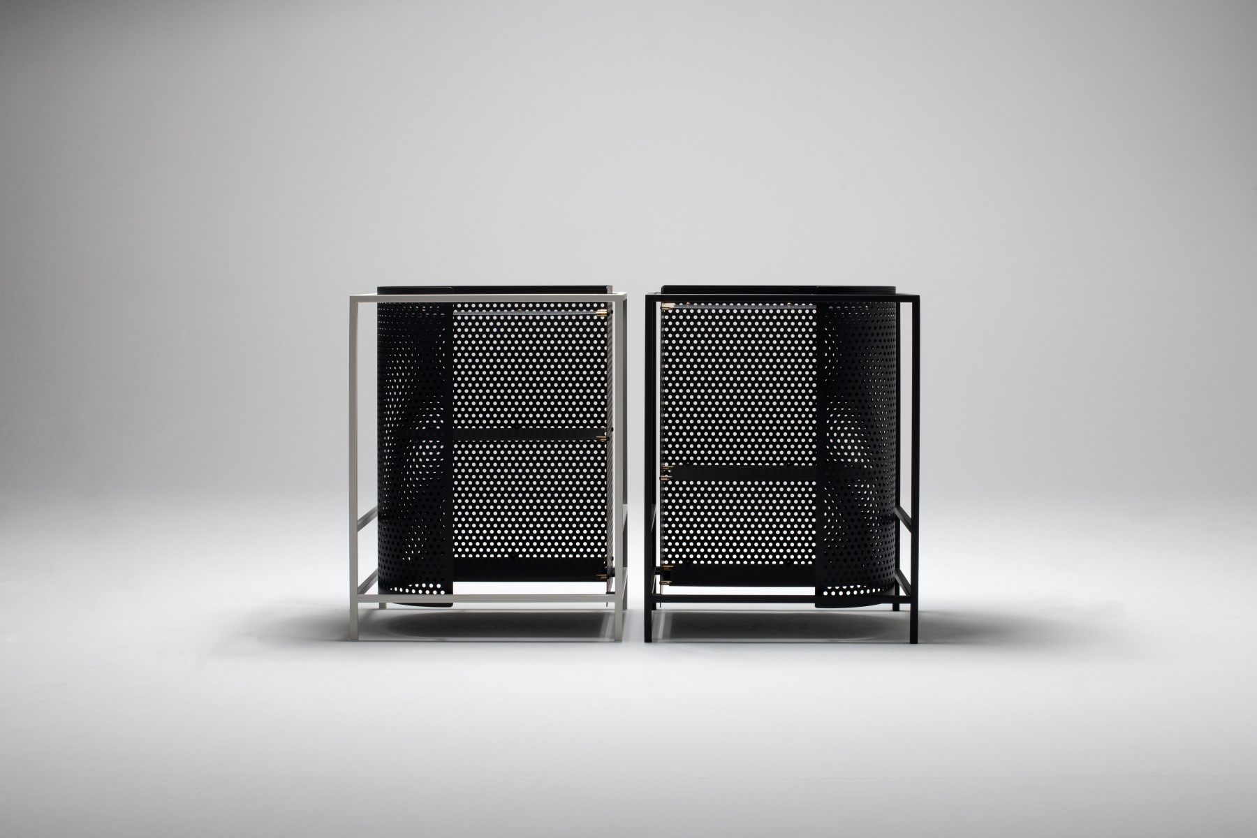Crafted with steel frames and powder-coated perforated paneling to add an element of visual delicateness. We designed them especially not to be rigid in terms of placement – there’s no front or back so it doesn’t have to sit against the wall; there’s a level of versatility that means they can be placed anywhere within a space.