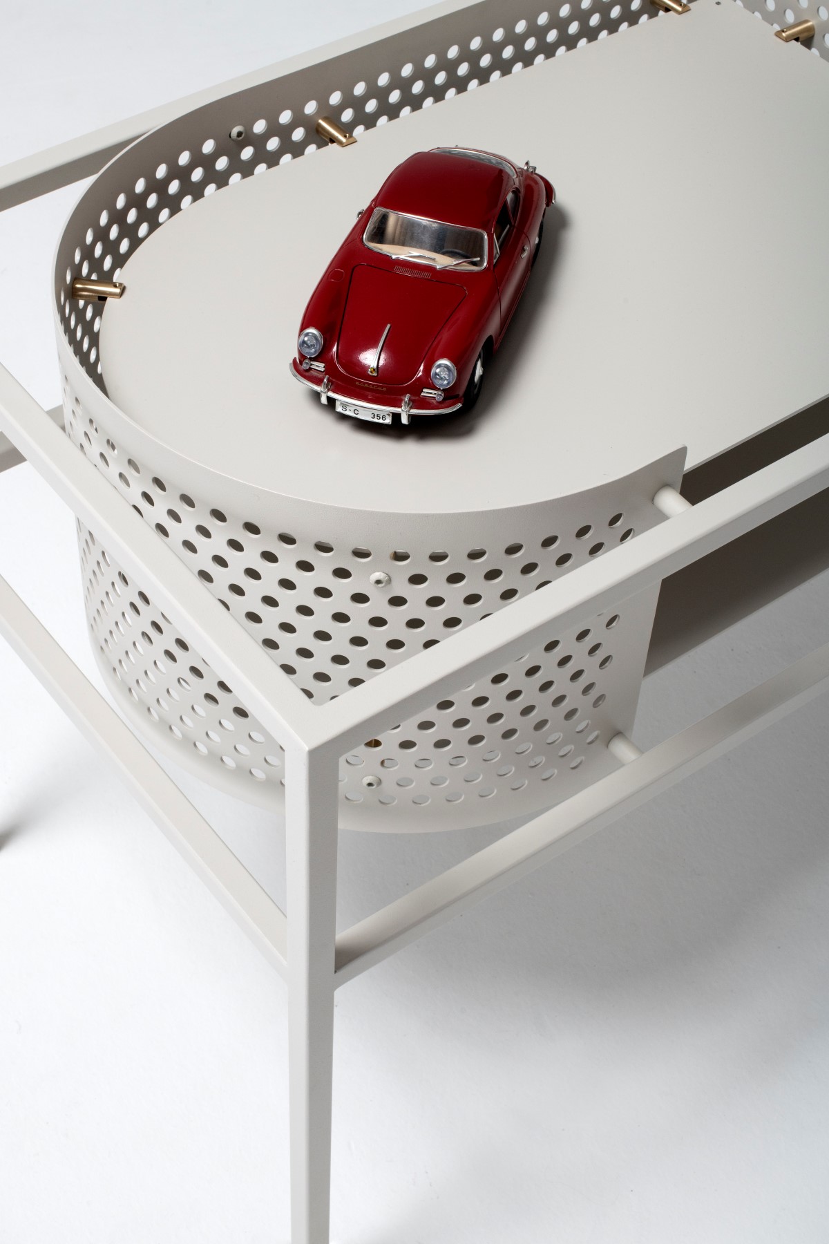 The inclusion of brass connections adds a touch of modernity and lightness, complementing the playful shapes. Customization options are available, allowing you to personalize your piece with a stone or timber panel on the top.