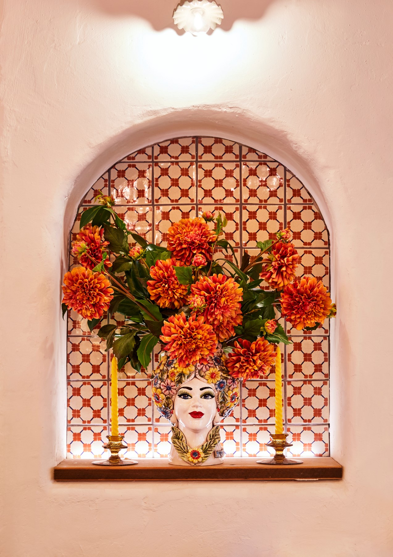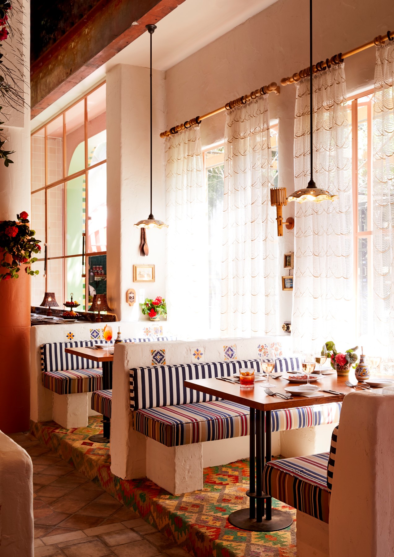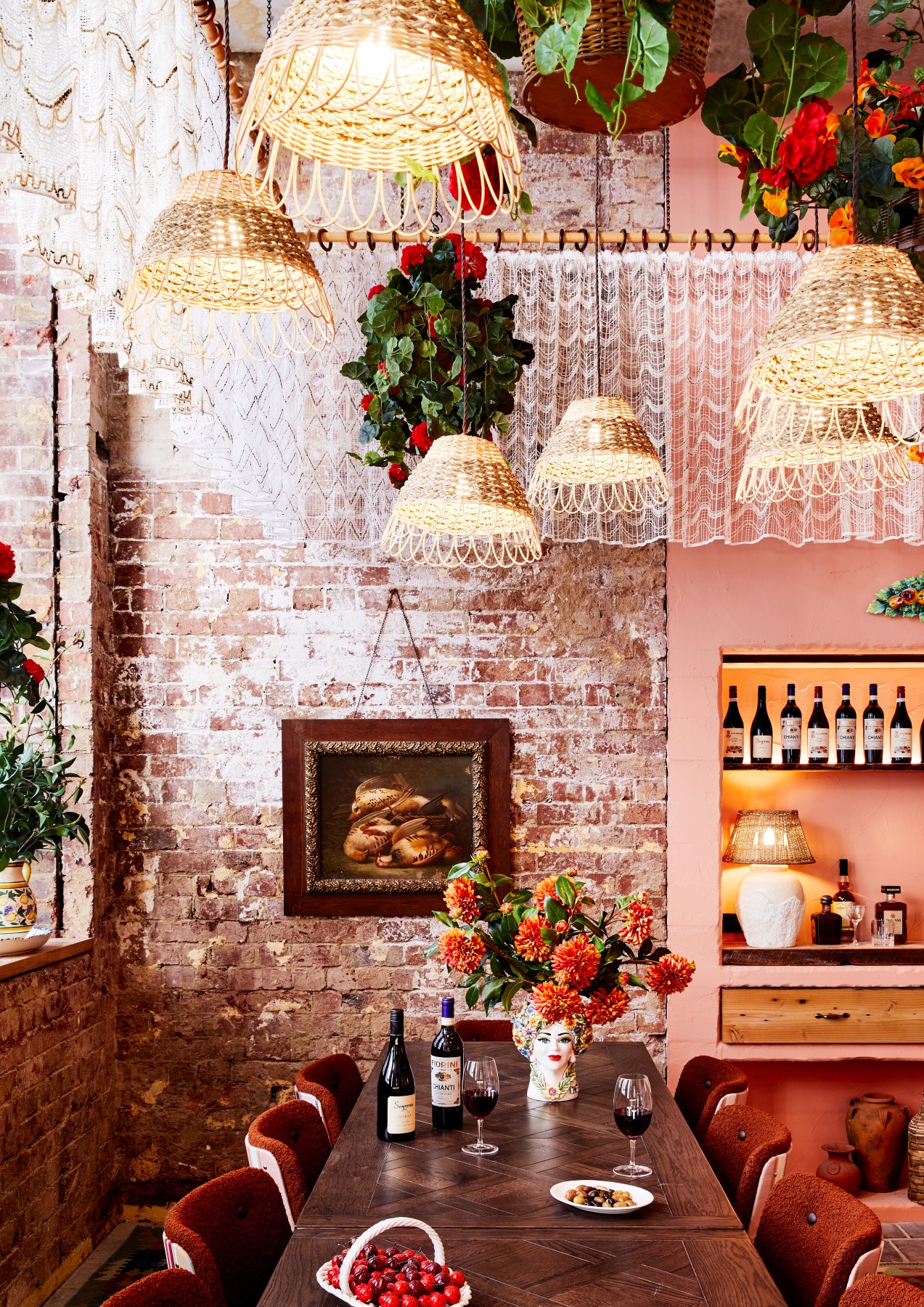 “Step inside and the illusion continues: ceilings festooned with festive bunting, reminiscent of small medieval towns with narrow cobblestoned laneways; backlit walls laden with pottery, bottles and greenery; and hints of the seaside”