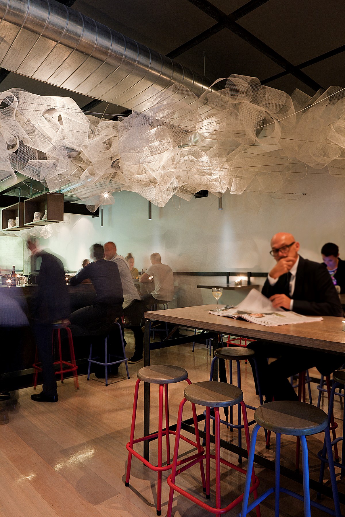 abstract way. The mesh installation also loosely references the successful lighting in their original restaurant Coda, giving a nice synergy between the two restaurants.