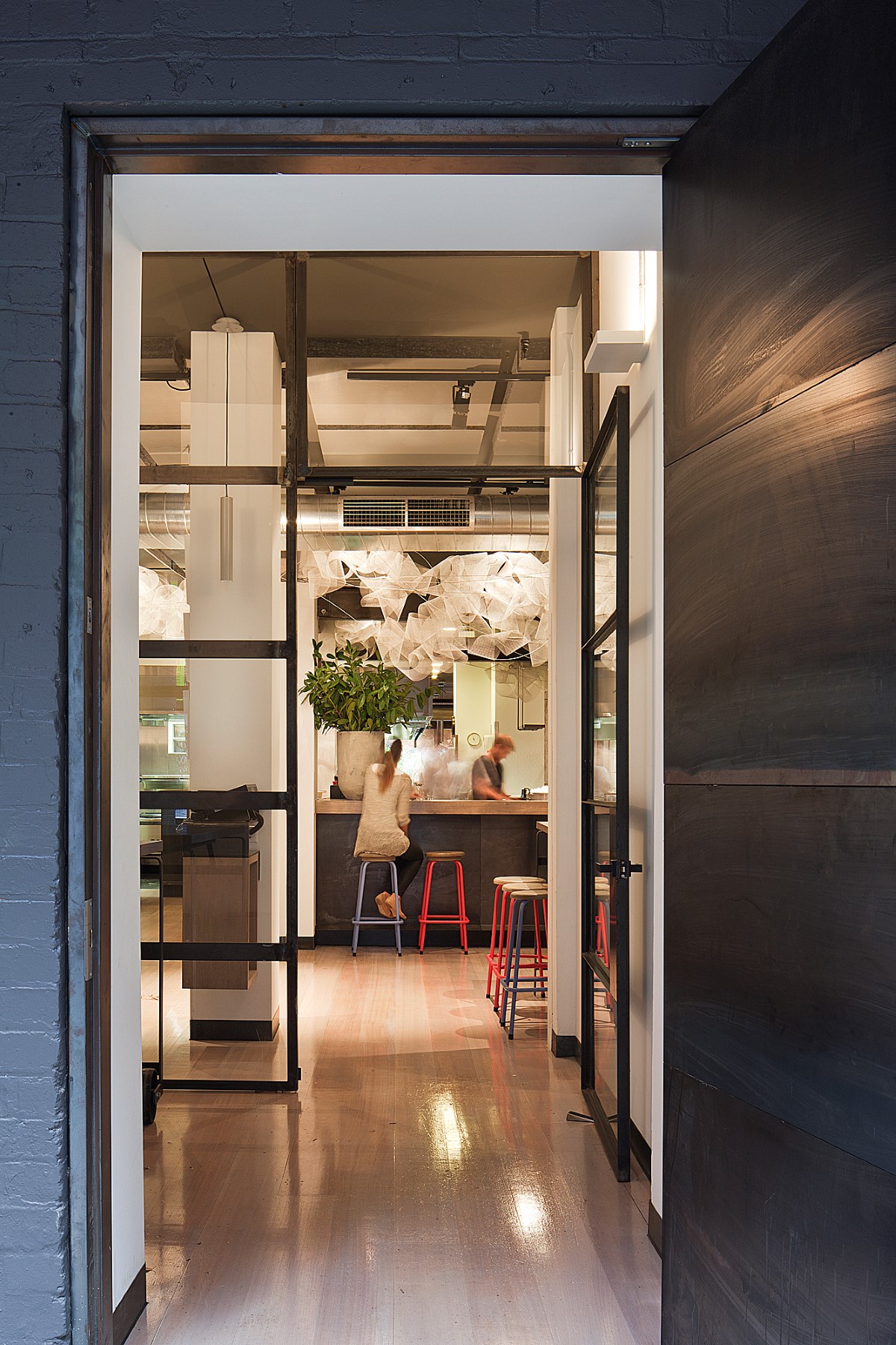 The design of Tonka responds to a uniquely challenging existing shell where limited access to natural light and the locations of existing services pushed program to either extremity of the long narrow tenancy; a bar area to one end and a dining room to the other. The kitchen exists in the centre and interacts with patrons of both sections in a genuinely engaging manner.